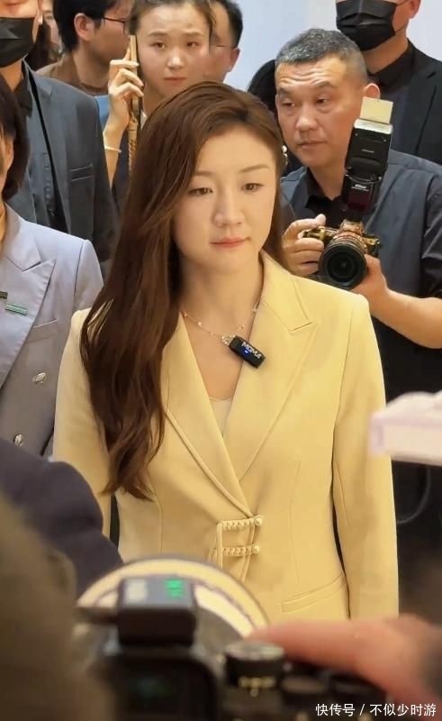 当天她身着剪裁利落的哑光黑西装套装,底妆清透、眉眼立体,笑容明媚且富有感染力,举手投足间既有世界冠军的笃定底气,又饱含平易近人的温度。